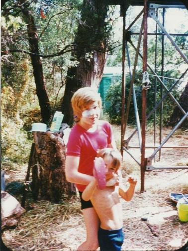 Balnarring Beach 1976. Fire Bell Tower in the background with Betty Payne’s children.