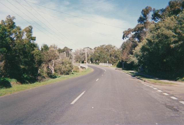 Balnarring Beach, 1990. Beach Road and bridge on Mericks Creek.