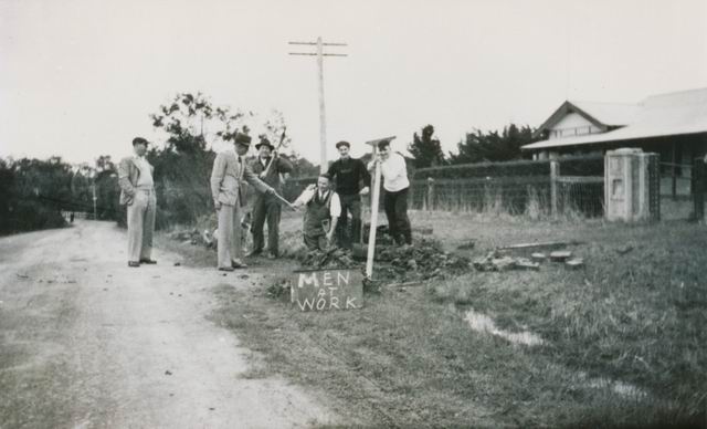 Balnarring Beach, 1920s. A working bee at The Harley Club.