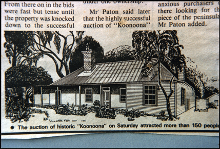 HISTORYMerricks -’Konoona’ sketch: home to Val and Sue Hellicar part of a newspaper report on the auction sale of the house in the later twentieth century.
