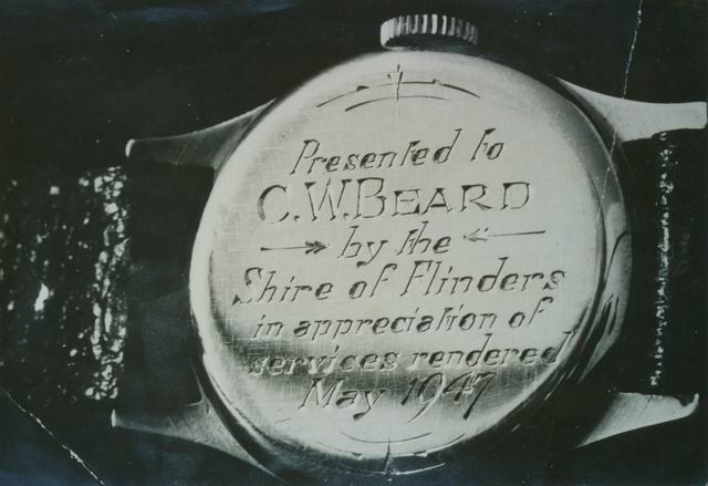 HISTORYBalnarring 1947. A watch presented Charles Beard by the Flinders Shire on his retirement.
