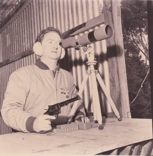 HISTORYBalnarring no date. Man with gun looking through a telescope, possibly in the Balnarring Gun Club.