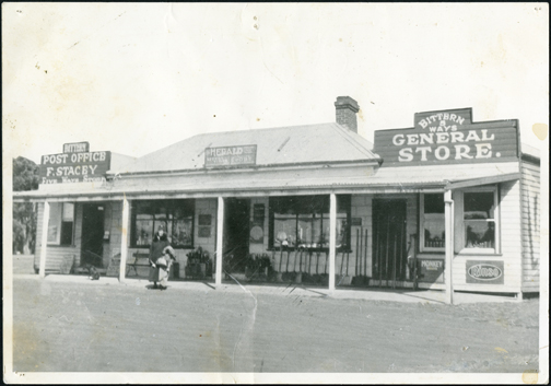 The original store on the corner of Frankston flinders and Myers roads was opened in 1912. Frank Stacey sold the business and leased the building in 1937/38, but kept the Post Office. In 1952 he built a new post office at his residence in Framkston Flinder Road. The old tsore was destroyed by fire in the 1960s.