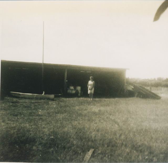 Balnarring Beach 1960. Ferguson Farm implement and shearing sheds. Eileen Ferguson in front.