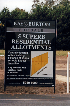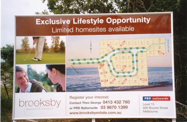 Balnarring 2003. Advertising sign for Brooksby Esate sales.