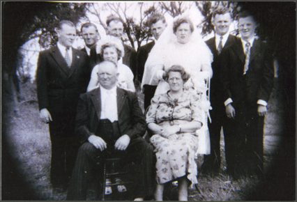 HISTORYCrow family at Betty’s wedding. Jim, Charles, Ernie, Eddie, Harry, David, Jane, Betty, William and Elizabeth