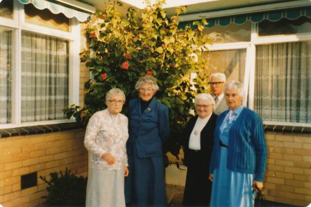 Rita Lowe, Marjorie Robb, Pearl Dunn, Frank Stacey, Charlotte Stacey.