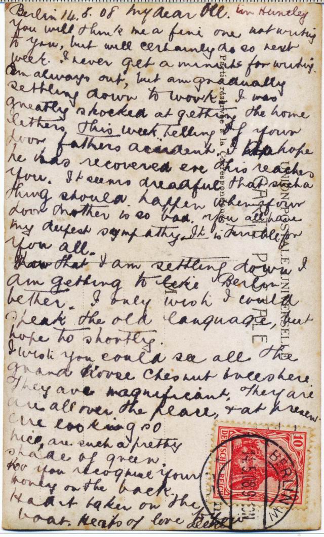 Bittern 1904. Card letter from Lyn Huntley sent from Berlin to Olive Oswin.