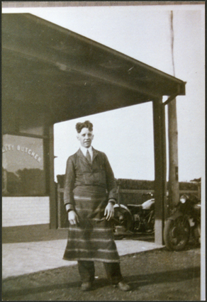Dave Crow outside Flindres Butchers. Dave was killed in a motorcycle accident. Adopted son of Ch....