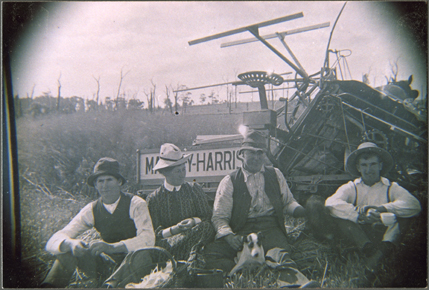 HISTORYMerricks 1920s. Sue and Dick Oswin with two Callanans and a new Massey Fergusson reaper.