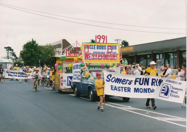 Somers 1991. Somers Fun Run banner in the Hastings Day Parade.