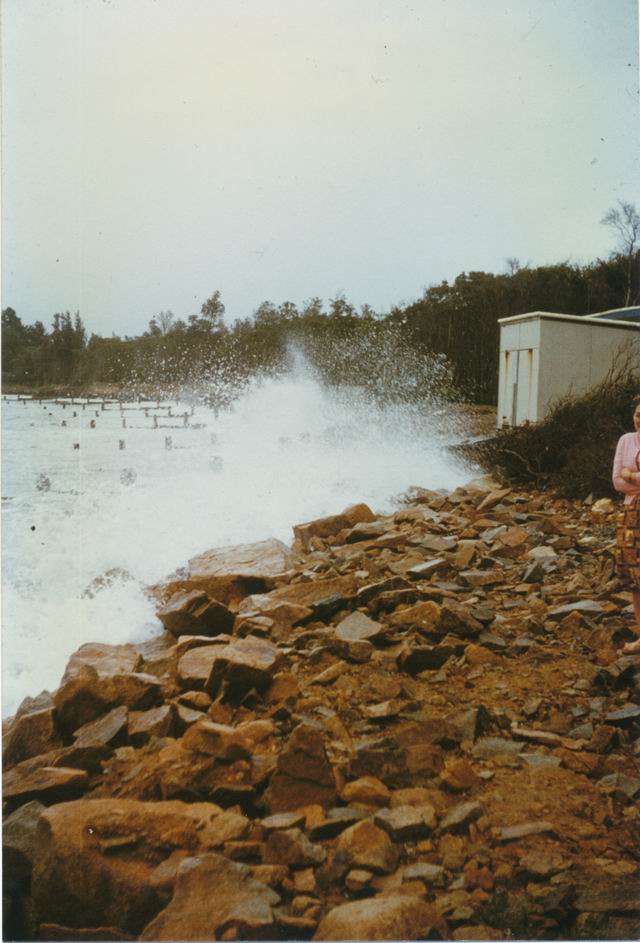 HISTORYBalnarring Beach c.1964. Balnarring back beach from ‘the point’ with storm suge waves causing erosion. A sea wall was built in the 1950s to curb erosion.