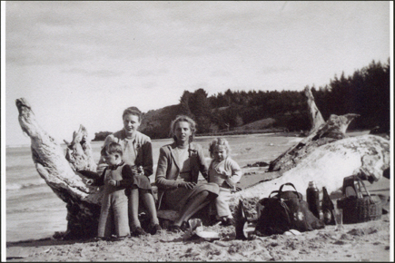 Balnarring Beach 1948. Julie Allen aged two with her mother and friends.