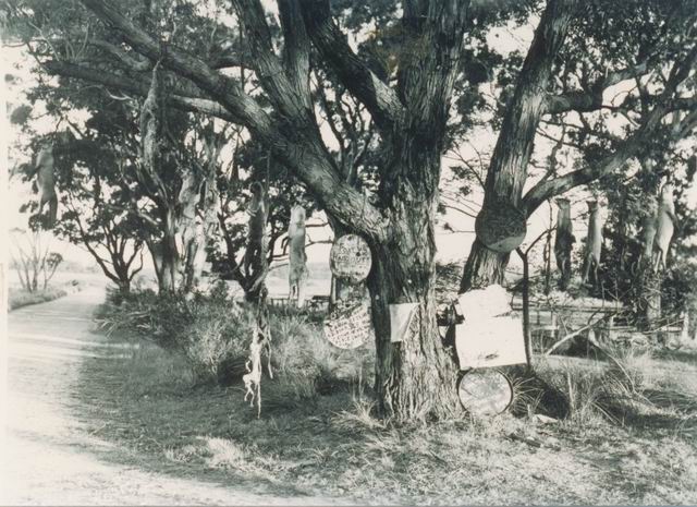HISTORYMerricks North c.1940. Foxey’s Hangout at the junction of Balnarring and Tubbarubba Roads where trappers hung shot or captured dead foxes.