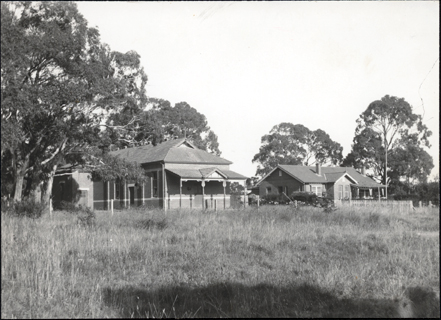 DESCRIPTIONThis image is of the Catholic School in Hastings. There are two brick buildings and both have triangular pediments at the front along with verandah posts. The building on the left of the photograph has a white line running around it about one third up from the ground. Both buildings appear to have tiled roofs. Two brick chimneys are seen on the building on the right of the photograph. There is a large expanse of grass in the foreground and large trees are seen on both sides of the buildings and at the back of the buildings.