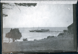 HISTORYThis is the Stony Point jetty and the boat moored at the end is the “Alvina”. The “Alvina” was a ferry that took passengers from Stony Point, Philip Island and French Island. It was built of iron in the UK in 1887. She was 194 tons gross with a length of 139 ft. She came to Western Port in 1923 and stayed for ten years. Written on the back in red pencil is: “Alvina at Stoney Point”. Information on the “Alvina” is can be found in the book ‘Hastings People & Places Vol 2”.