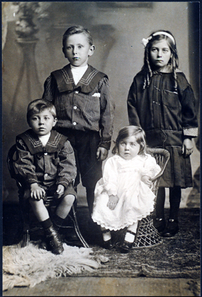 HISTORYThe names of these children are: Bill De La Haye, Dorothy De La Haye, Joseph De La Haye and Anne De La Haye. Both copies of this image are the same size and their names are written on the back of each photo. The original photo is owned by Dell Mirabella.