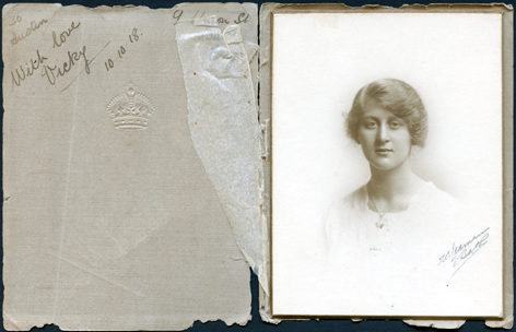 HISTORYThe inscription inside the brown paper cover reads: “To Austin with love from Vicky 10/10/18” Also written is: “9 Union St Bath Eng”. Written on the back of the cover in red biro is: “Photo Mrs Ruby Barclay”.