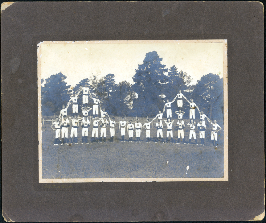 HISTORYThis is a photograph of the Defence Forces Acrobatic and Fencing team. Written on the back of the photograph in blue biro is: “Defence Forces Aerobatic & Fencing Team Hastings ? - Circa 1907”.