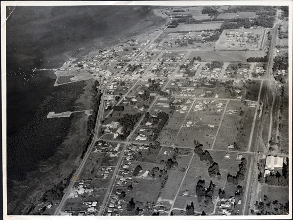HISTORYThis aerial photo of Hastings taken in July, 1966, shows the reclamation site for the Hastings Shire Offices. Written on the back of the photograph in pencil is: “Hastings, July 1966 Reclamation by tipping in front of Shire Offices Site”.” Written in pen is: “July 66”.