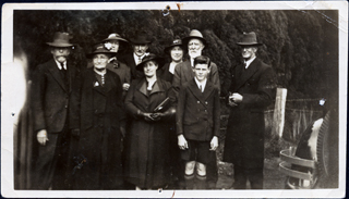 HISTORYThis group contains members of the Barclay family, although some people are unidentified. Written on the back in blue pen is: “Left to Rt John Henry Barclay ? ? Ella Barclay John B Rosina “ ? Dave B”. Also printed is: “Kodak Print Velox”.