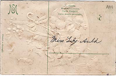 HISTORYChristmas postcard sent from Hetty (name unknown) to Miss Lily Auld. Postcard originated in Germany, but with no postal markings