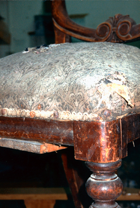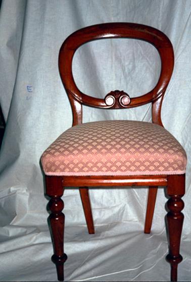 HISTORYThis is one of three chairs donated to the Hastings-Western Port Historical Society by Mr Jim Harris. A donation of $500 was received from the Bittern Sunday Market Inc to be used for the restoration of the chairs, which was done by Glenn Upholster on Flinders Road, Tyabb. The cost was $135 each. These chairs are in the Pioneer Cottage, which is part of the Hastings-Western Port Historical Society complex. P816.1 shows the chair before restoration and P816.2, after restoration.