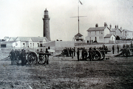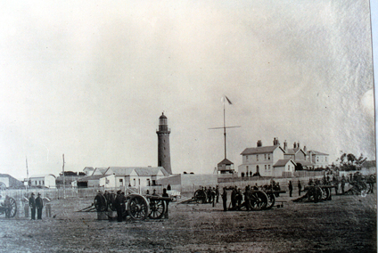 HISTORYThis series of four photographs were taken at Fort Queenscliff, Victoria about 1882. It shows four or more Armstrong 40-pounder guns lined up with crews on the cliff top. Exercises involving the guns and about 400 men from the volunteer Garrison Artillery were undertaken in Easter 1882 and 1883.