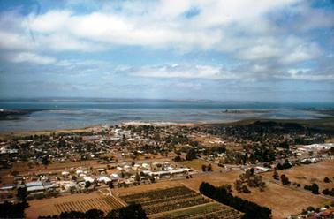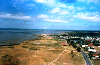 HISTORYThese aerial photographs are of the Western Port and the town of Hastings. It shows the shore line after land fill and the Hastings Festival taking place. The photograph was taken from a helicopter in March, 1988.