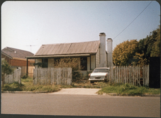 DESCRIPTIONA weather board cottage with an iron roof, a verandah and two chimneys on right side of the building