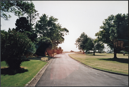 DESCRIPTIONDriveway to ‘Moondah’ curving to right, lined with trees, including Norfolk Island Pine cement curbing