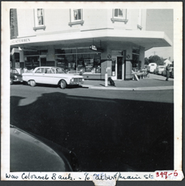 HISTORYThe owners of the building were Sarah and Thomas Allchin c1875, operated as the Oriental Bank then the Colonial Bank, delicatessen on the left, Point Hardware (Maurie Long) in corner shop, cars parked in street