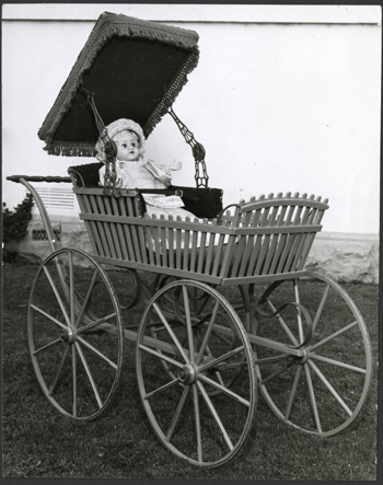 HISTORYThis pram was brought to Williamstown during the 1850’s Gold Rush to be used to wheel a few tools to the Bendigo Gold Fields, after the miner covered the distance, he then traded the pram for a jar of twist (tobacco) and food (presented to the Society by Mr C. Boardman of Mt Martha during 1967)