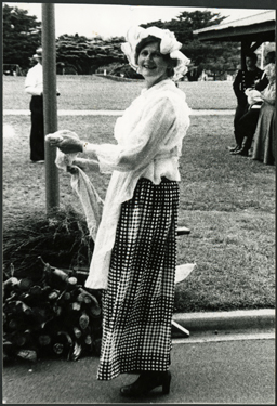DESCRIPTIONA group of people having a picnic in the Mornington Park, Margaret Picking, in the right of the photo is dressed in period costume