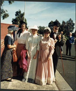 DESCRIPTIONMembers of the Mornington Historical Society, Joan Unsworth, Neil Taylor and others, waiting for transport, to take part in the Bicentennial Parade in Main Street, Mornington
