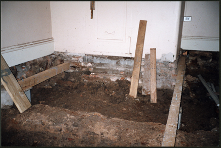 DESCRIPTIONThe new floor of the main room in the process of being built, the strongroom at rear