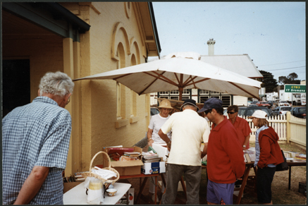 DESCRIPTIONThe image shows people looking through books at the Book Stall outside the OPOM on Australia Day 2003