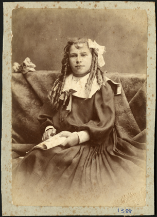 A portrait of Miss Wyn Bradford taken in a set pose by photographer