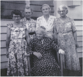 DESCRIPTIONA group photo of Emily Stone (nee Davenport) seated (Mother), surrounded by her daughters from left to right, Grace b.1905, Ada b.1897, Ivy b.1903 and Cis (emily) b.1886
