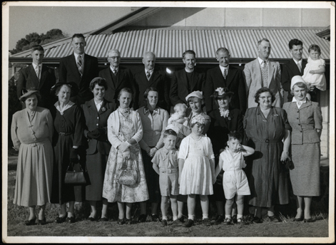 3. This shows a large group of people (about 20) and includes some children and babies. Everyone is dressed up, and the group in in two tiers, with the men at the back.
