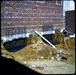 DESCRIPTIONThis shows a red brick wall and some blue metal grids that look to be supporting the wall in some way.