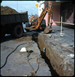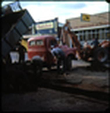 2.This is the same work but at a different stage. In the back ground is a Butcher, and the State Savings Bank with it’s distinctive yellow and black sign. In the foreground are two work men, and the red truck. On the right of the picture the digger can be seen.