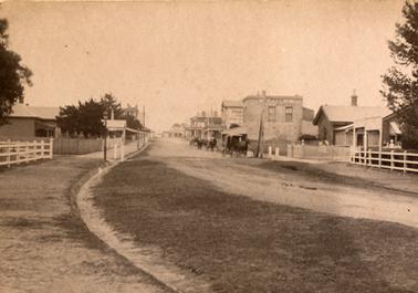 3. This image shows Main Street from the beach end. On the right there are a few buildings. One is The Federal Cash Company which sold “Grocery, Wine & Spirits”. In the centre of the picture are two or three horse drawn vehicles.