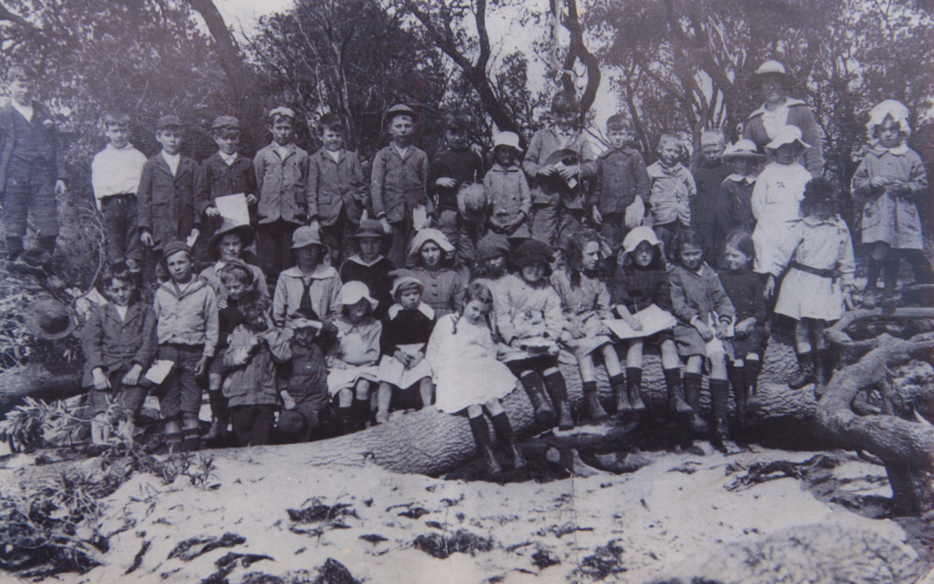 DESCRIPTIONSchool Children on foreshore with Grace Sullivan,