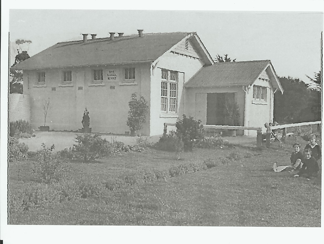 DESCRIPTIONPhoto of Rye School building 1923 (inc. children in foreground)