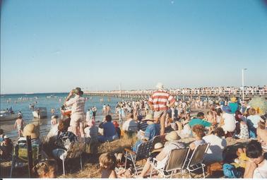 DESCRIPTIONCrowd at Rye Pier and foreshore - awaiting arrival of the Tall Ships Jan 1988