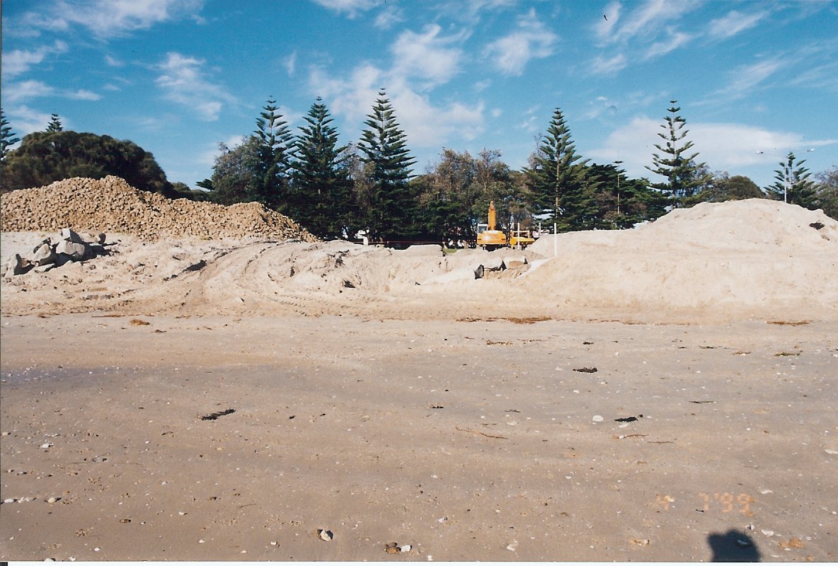 DESCRIPTIONPreparation for Stone Groyne - beach near Scout Hall.