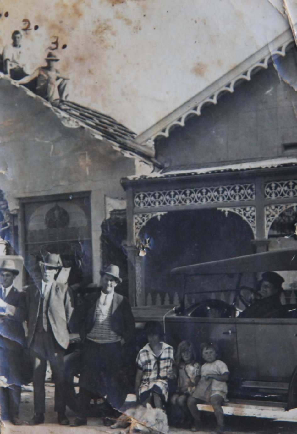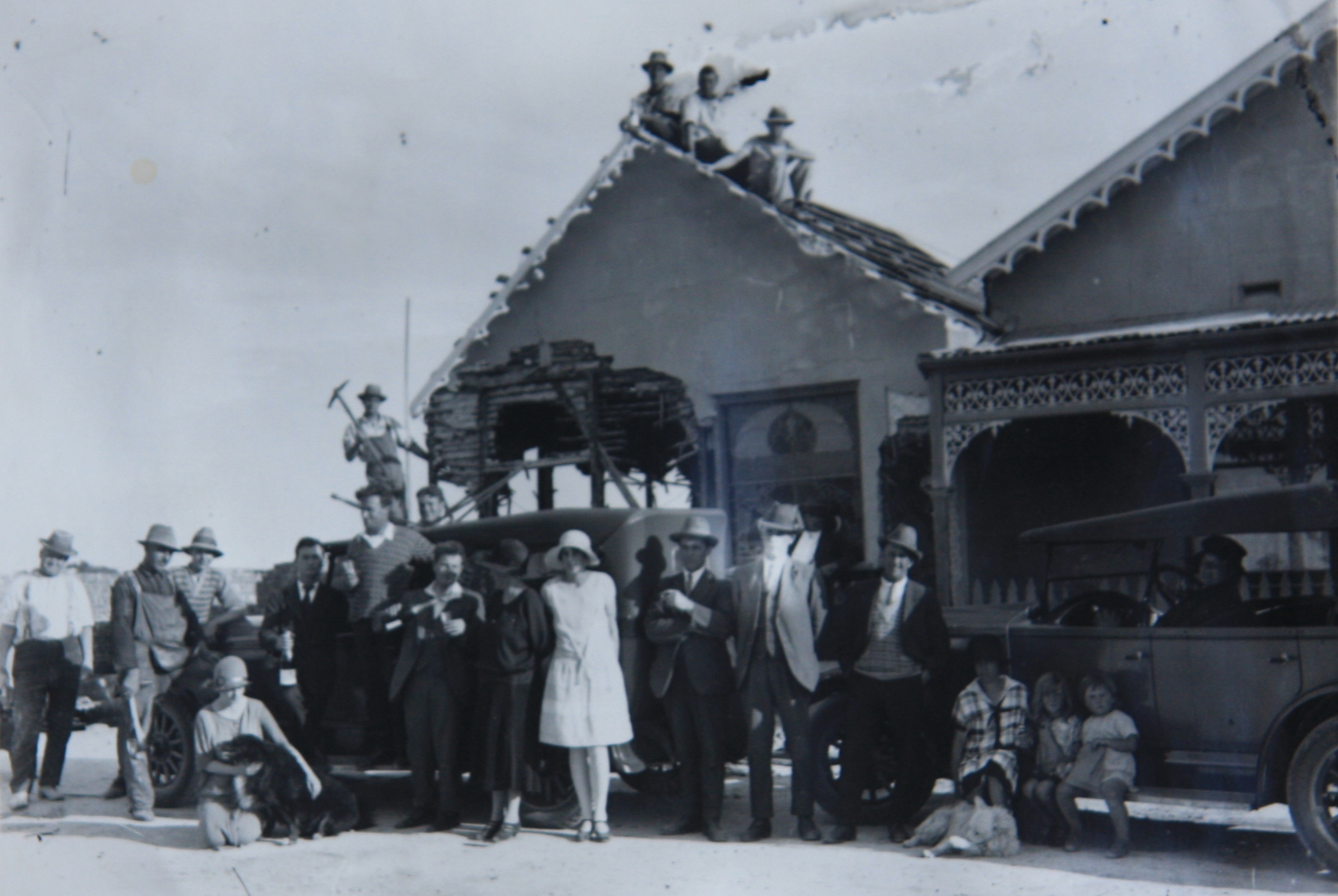 DESCRIPTIONDemolition of Gracefield Hotel 1926/27. (Workmen on roof).