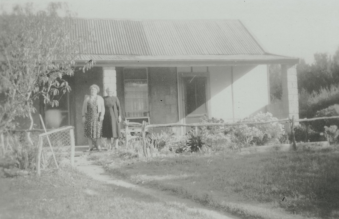 DESCRIPTIONCottage in Gordon St, Blairgowrie. At left: Lucy Watson nee Hill. Right: Elizabeth Hill nee Merser, mother of Lucy married George Hill 1940s-1950s.