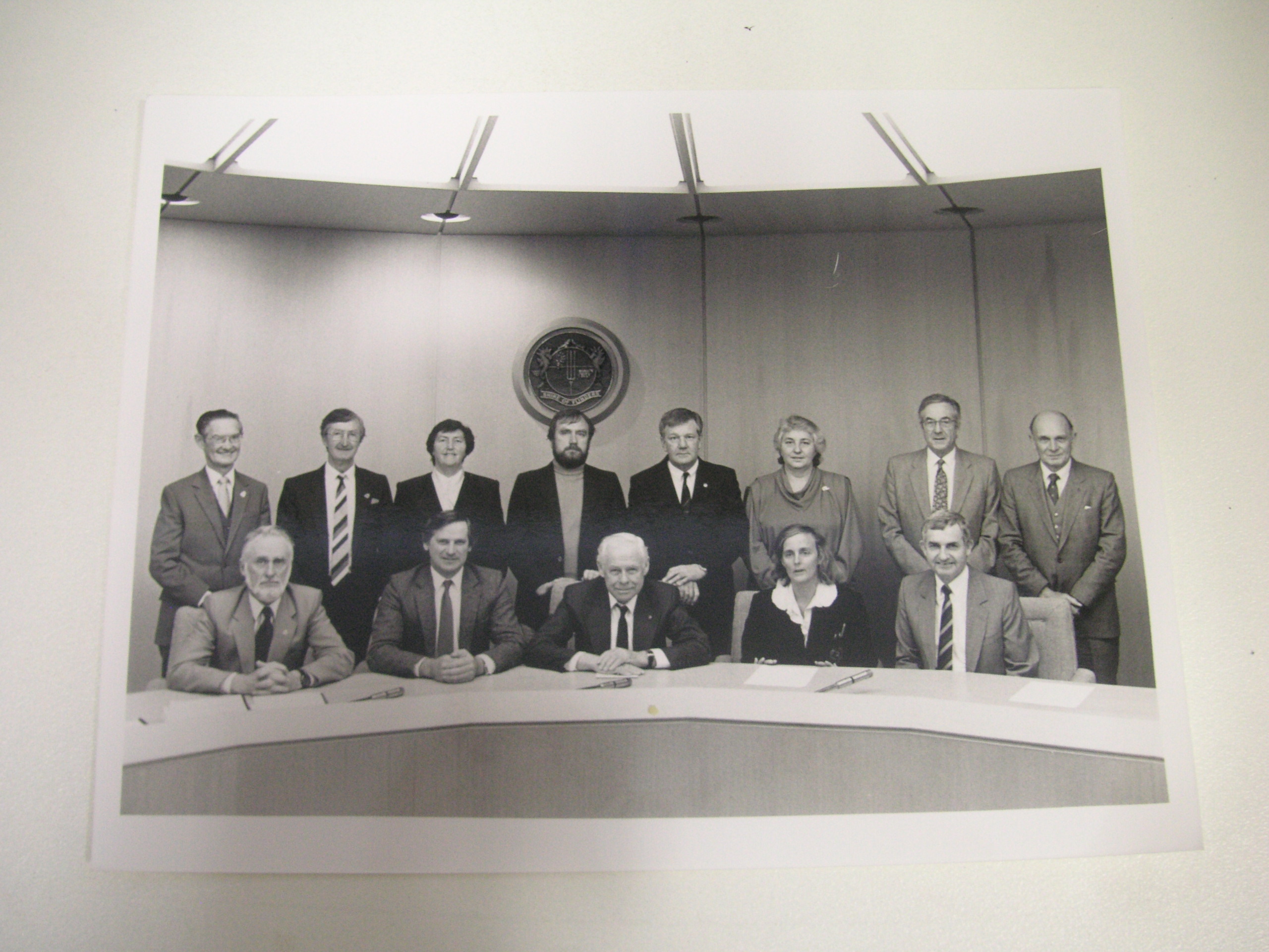 HISTORYShows Flinders Shire Councillors with CEO ( L. Jonesand President C. McCallum, 1989